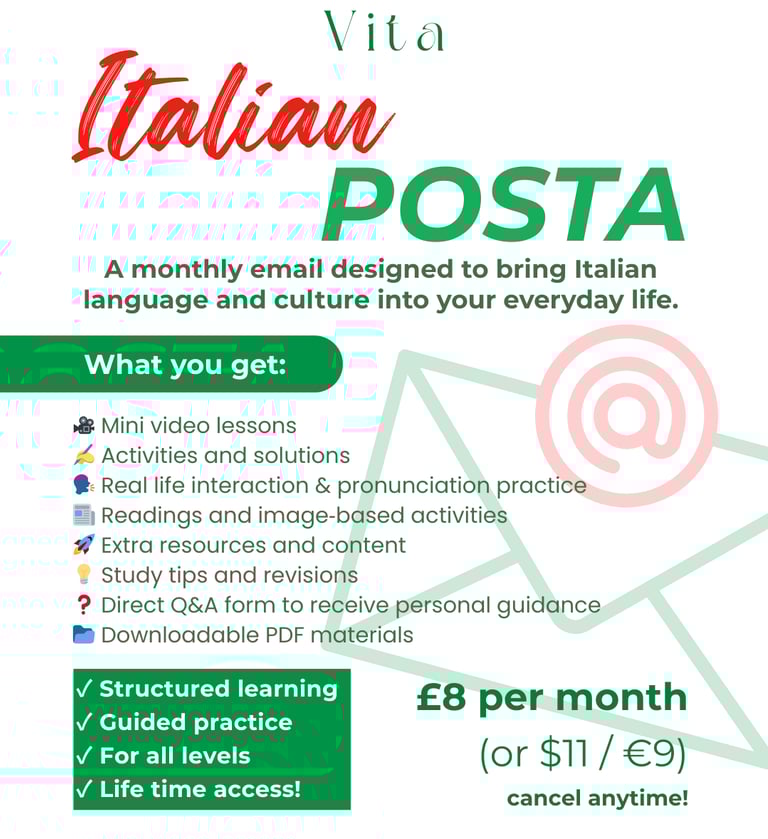 If you have any questions please get in touch info@learnitalianvita.com